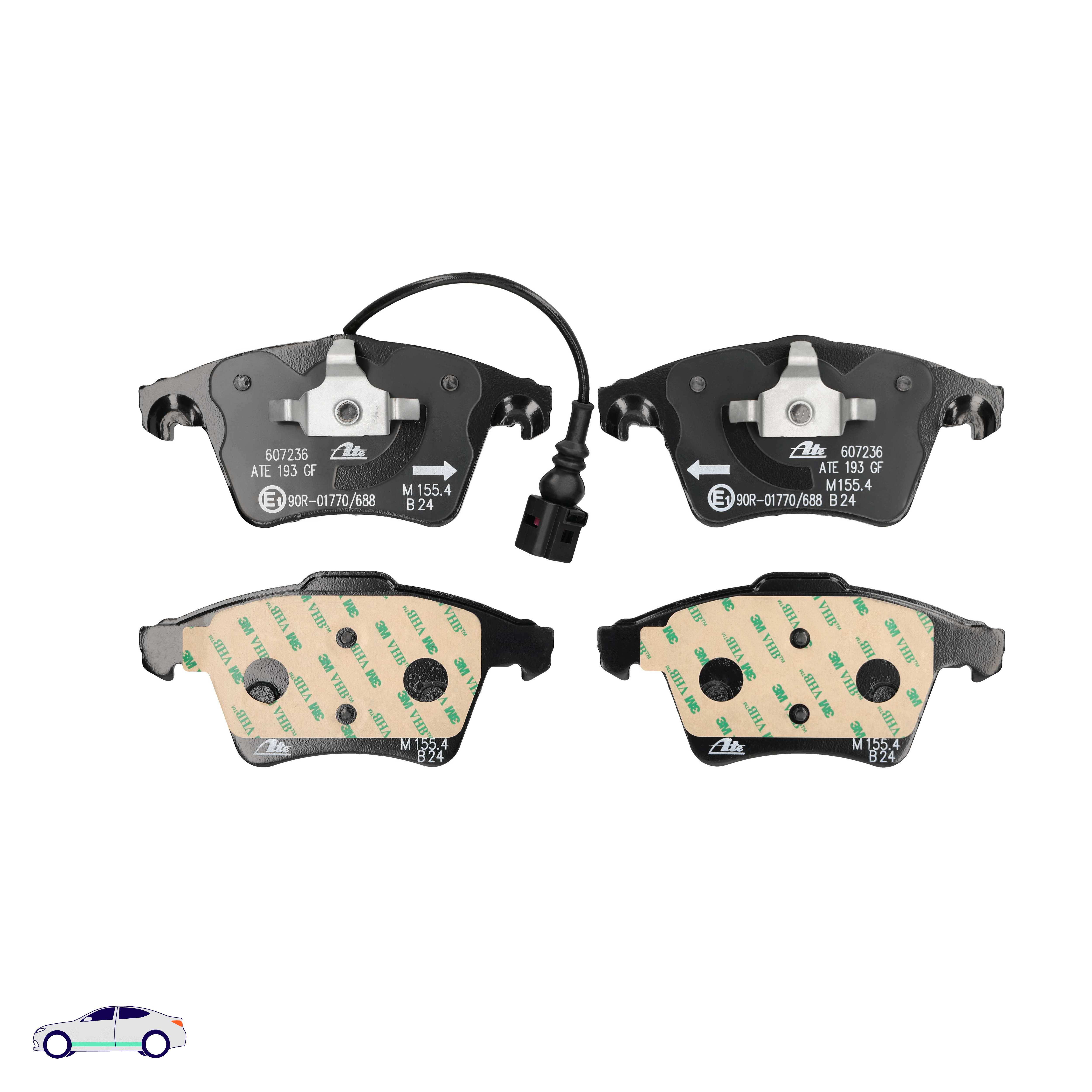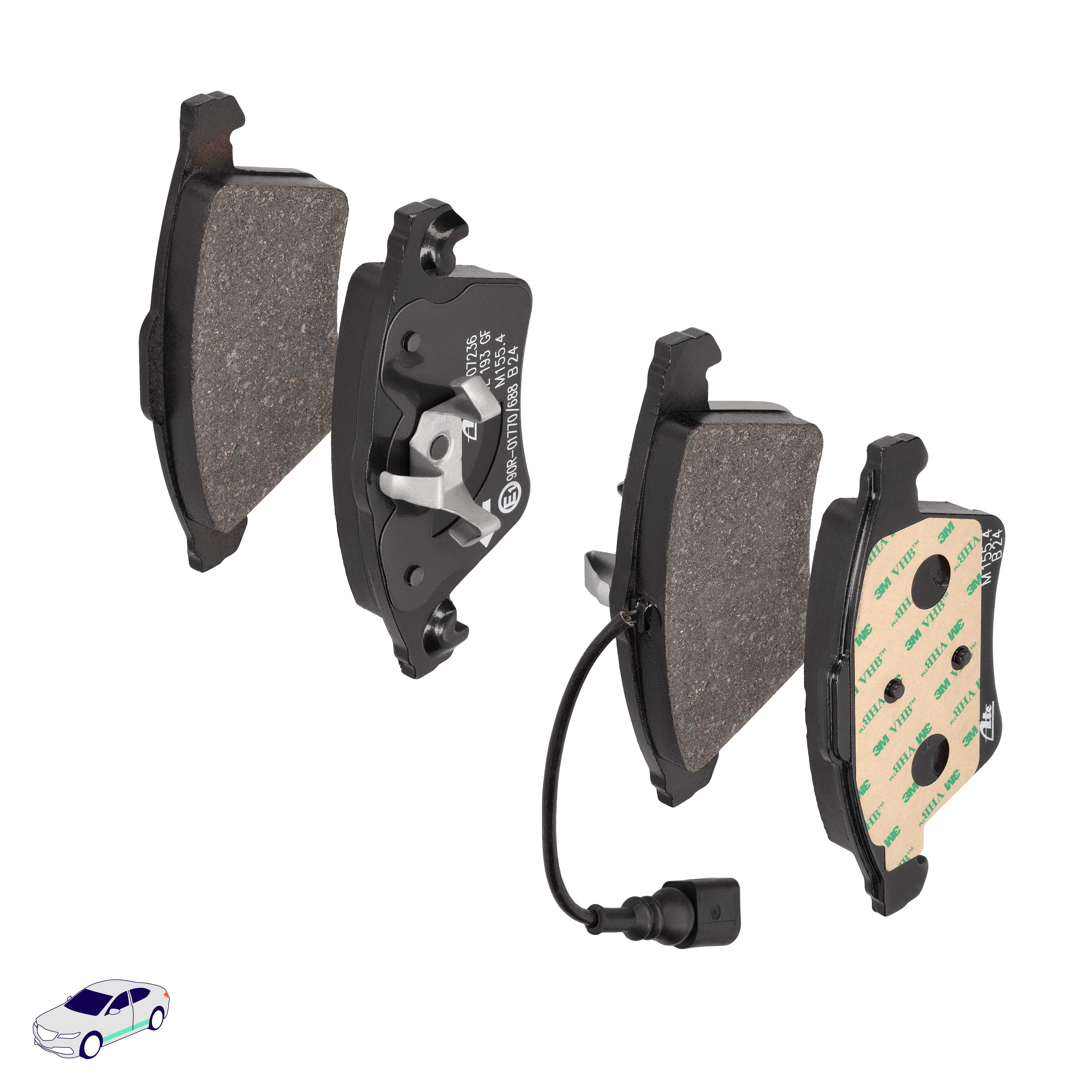 Menge 1 entspricht einem Satz (PKW = 4 Bremsbeläge für eine Achse, Zweirad = 2 Bremsbeläge für eine Achse)