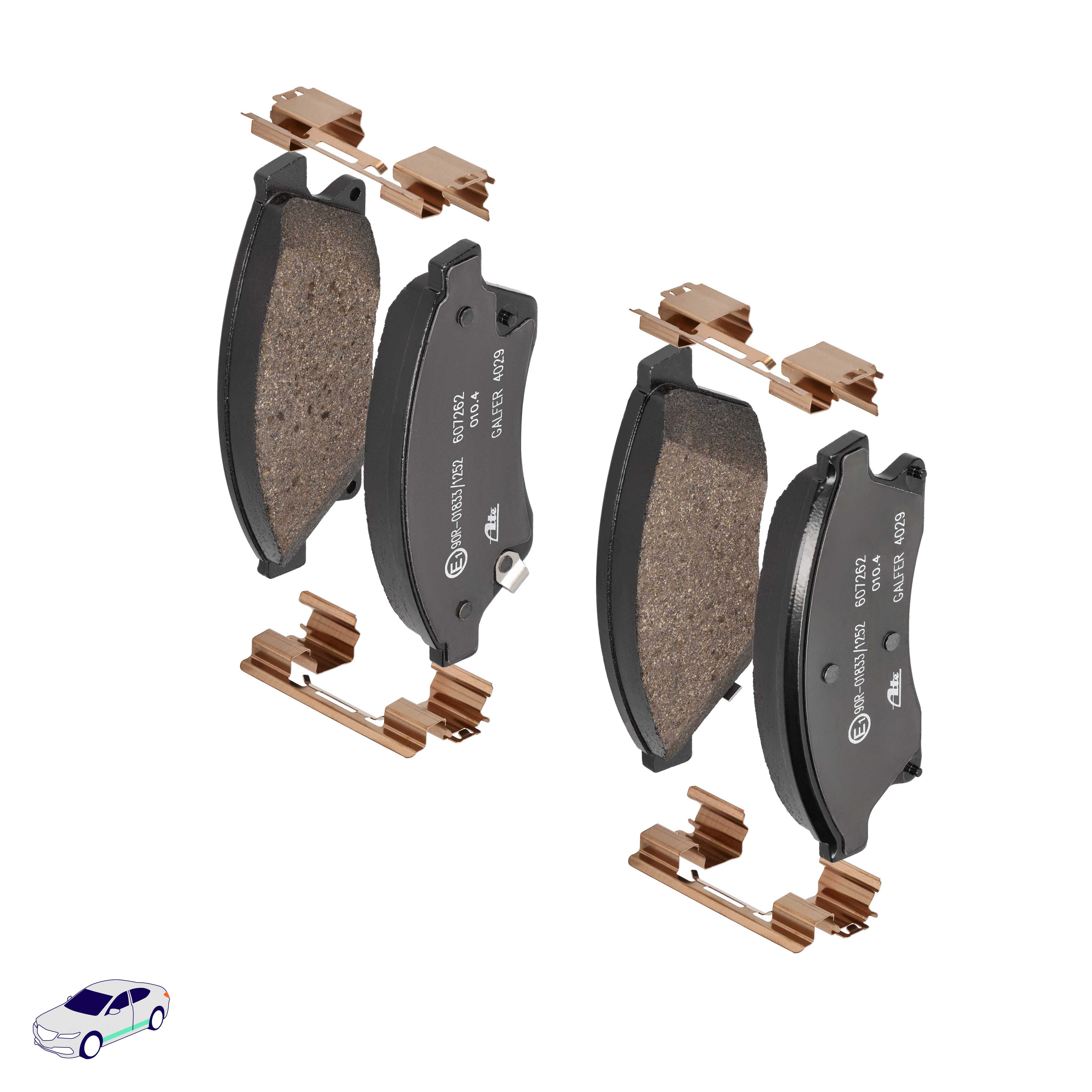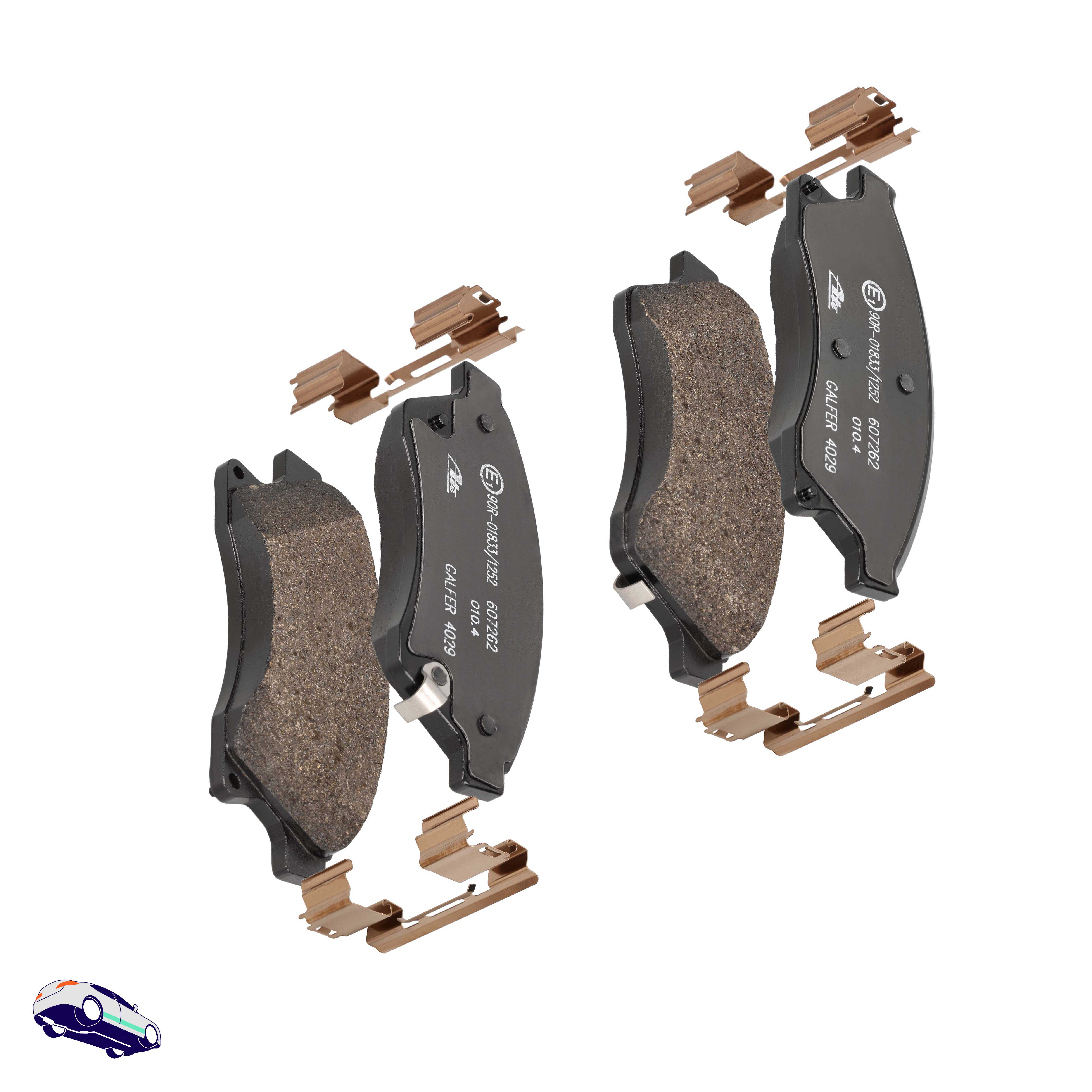 Menge 1 entspricht einem Satz (PKW = 4 Bremsbeläge für eine Achse, Zweirad = 2 Bremsbeläge für eine Achse)
