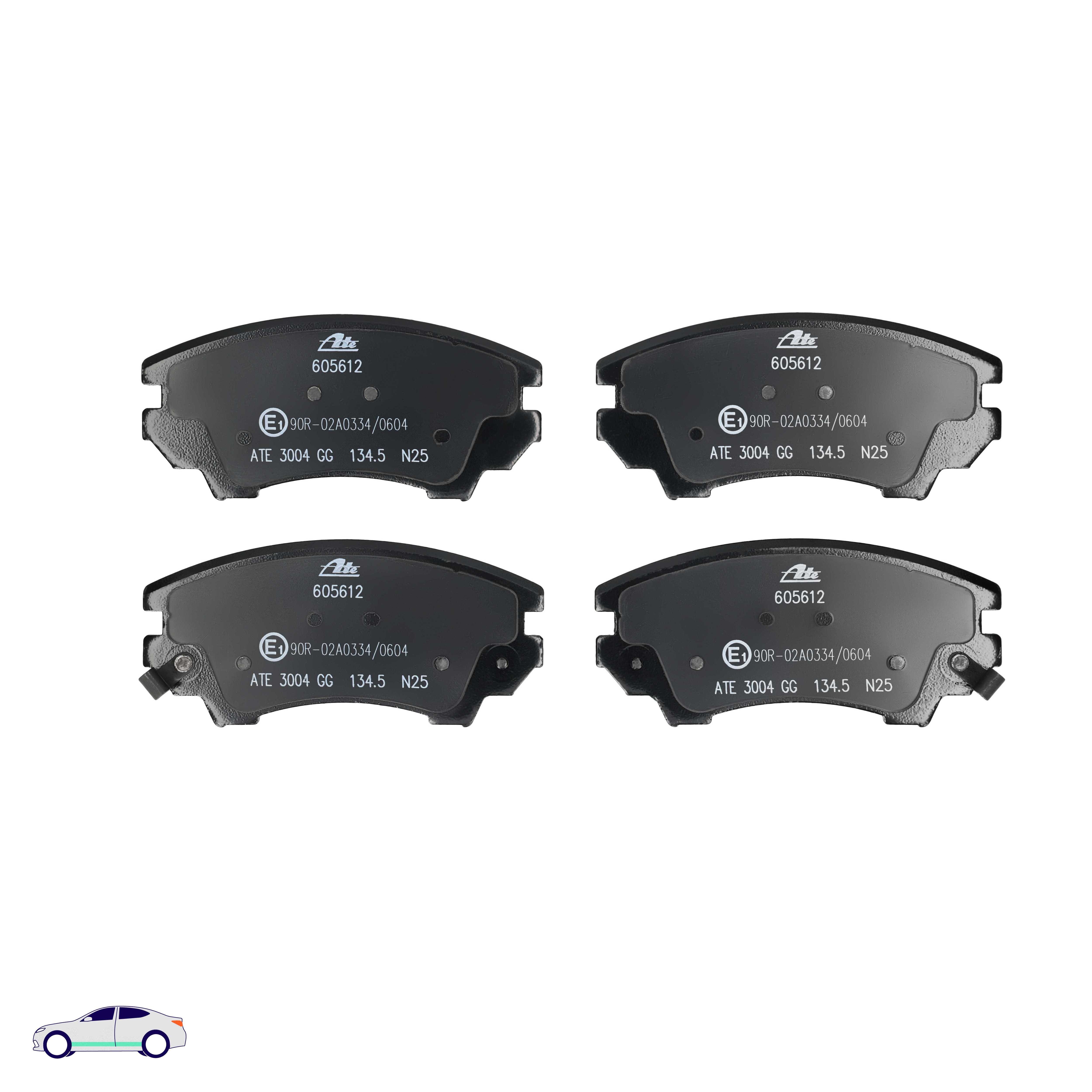 Menge 1 entspricht einem Satz (PKW = 4 Bremsbeläge für eine Achse, Zweirad = 2 Bremsbeläge für eine Achse)