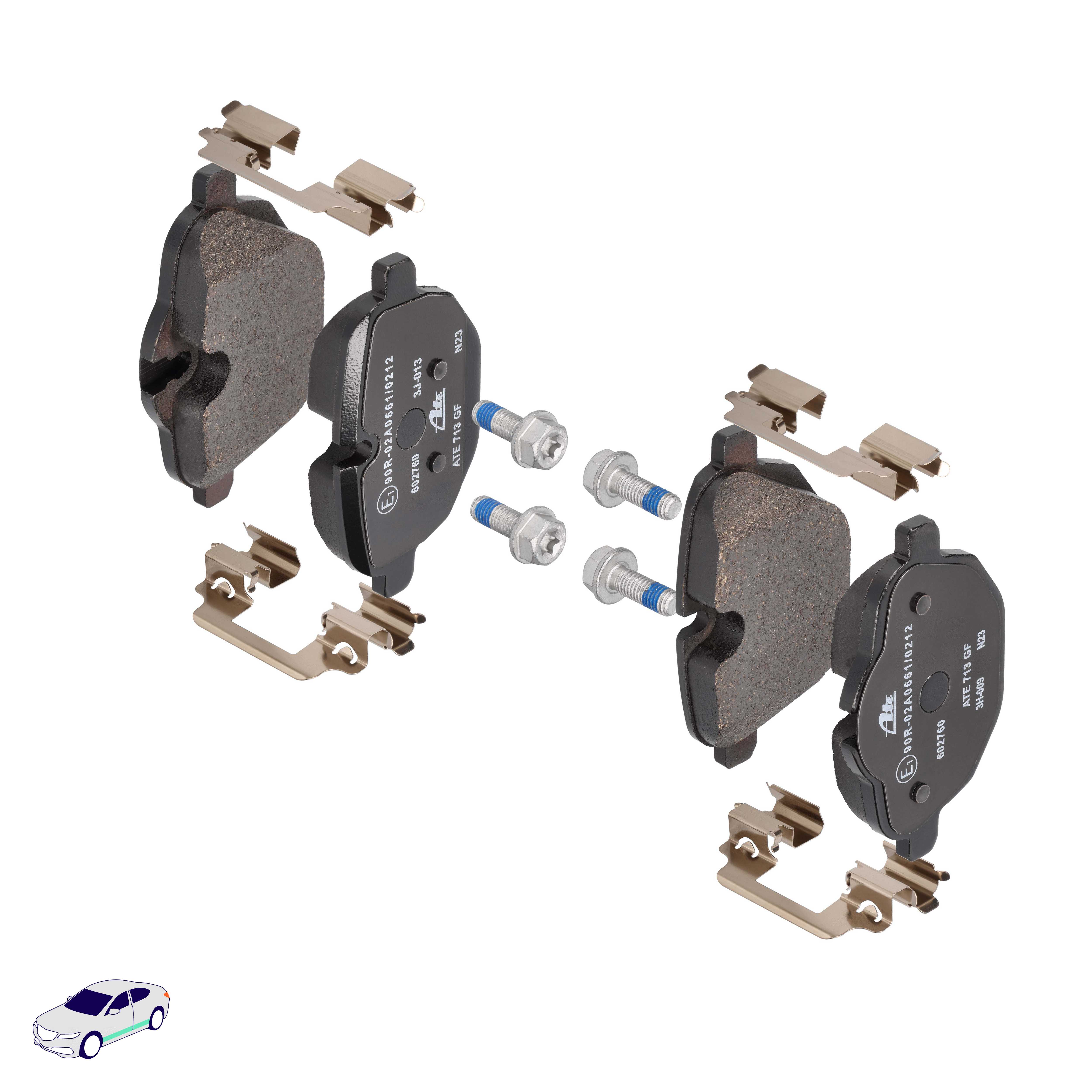 Menge 1 entspricht einem Satz (PKW = 4 Bremsbeläge für eine Achse, Zweirad = 2 Bremsbeläge für eine Achse)