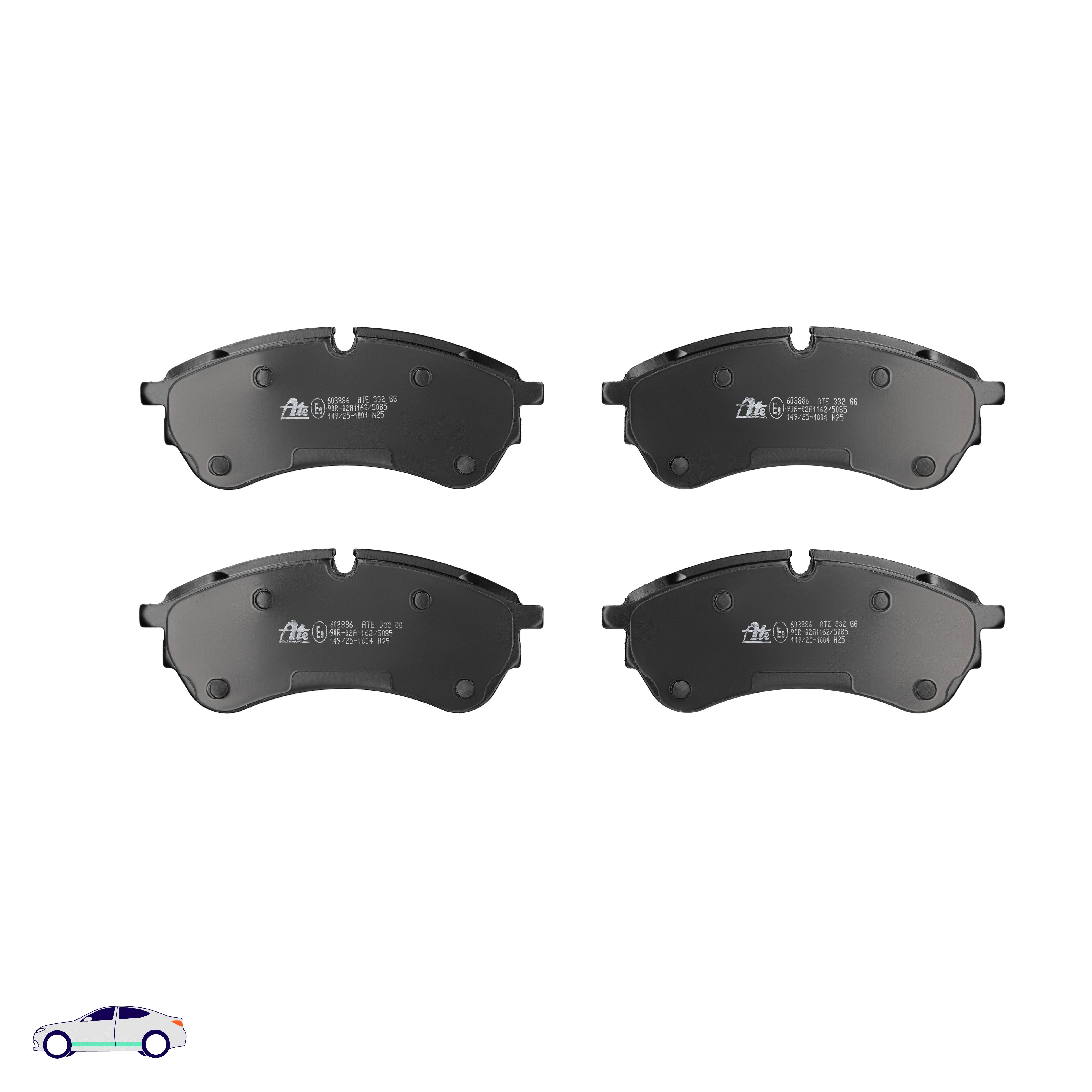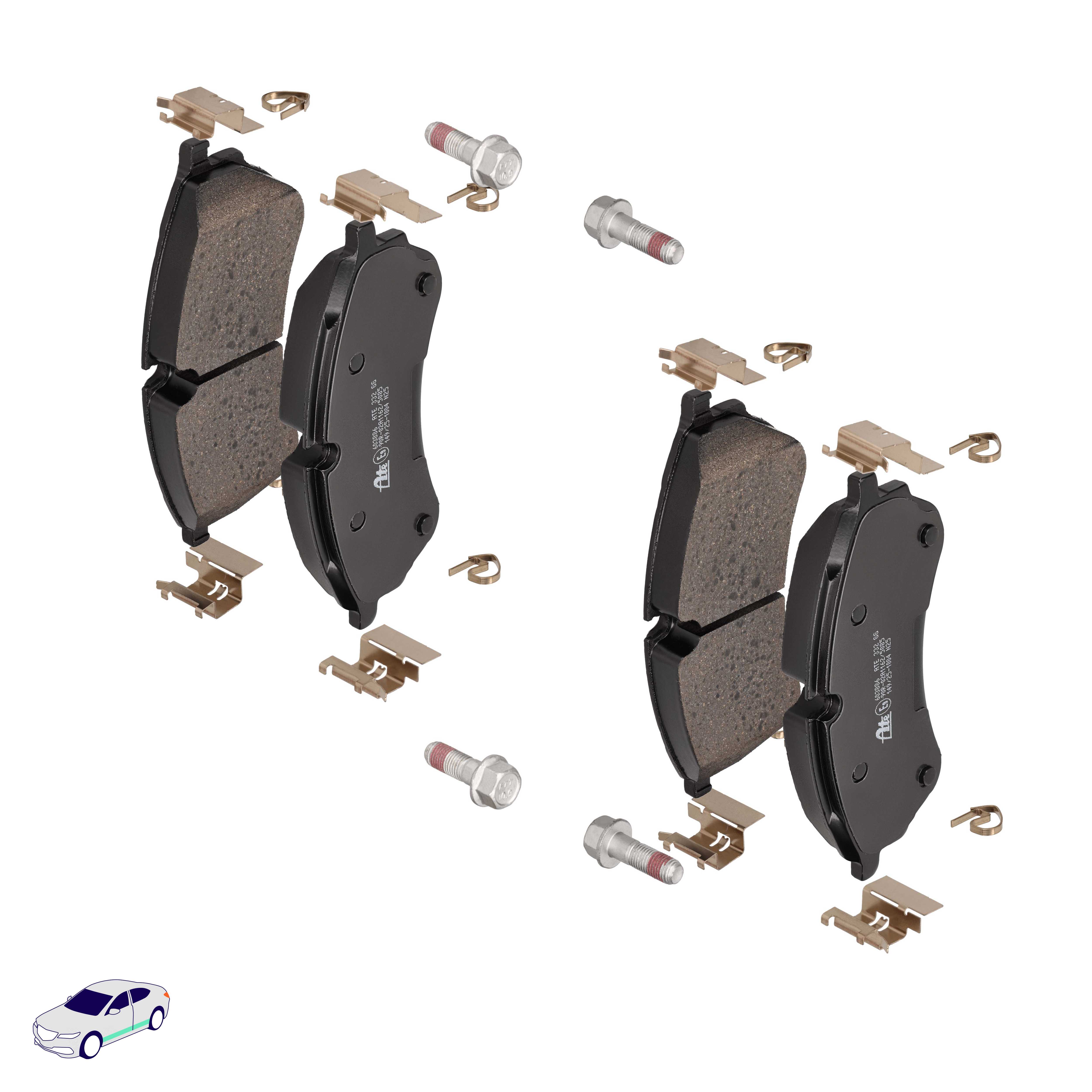 Menge 1 entspricht einem Satz (PKW = 4 Bremsbeläge für eine Achse, Zweirad = 2 Bremsbeläge für eine Achse)