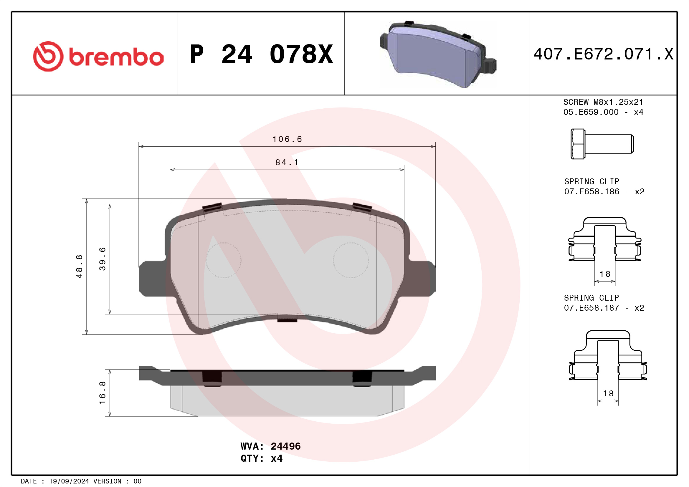 Bremsbelagsatz, Scheibenbremse "BREMBO XTRA LINE" Art.-Nr. P 24 078X