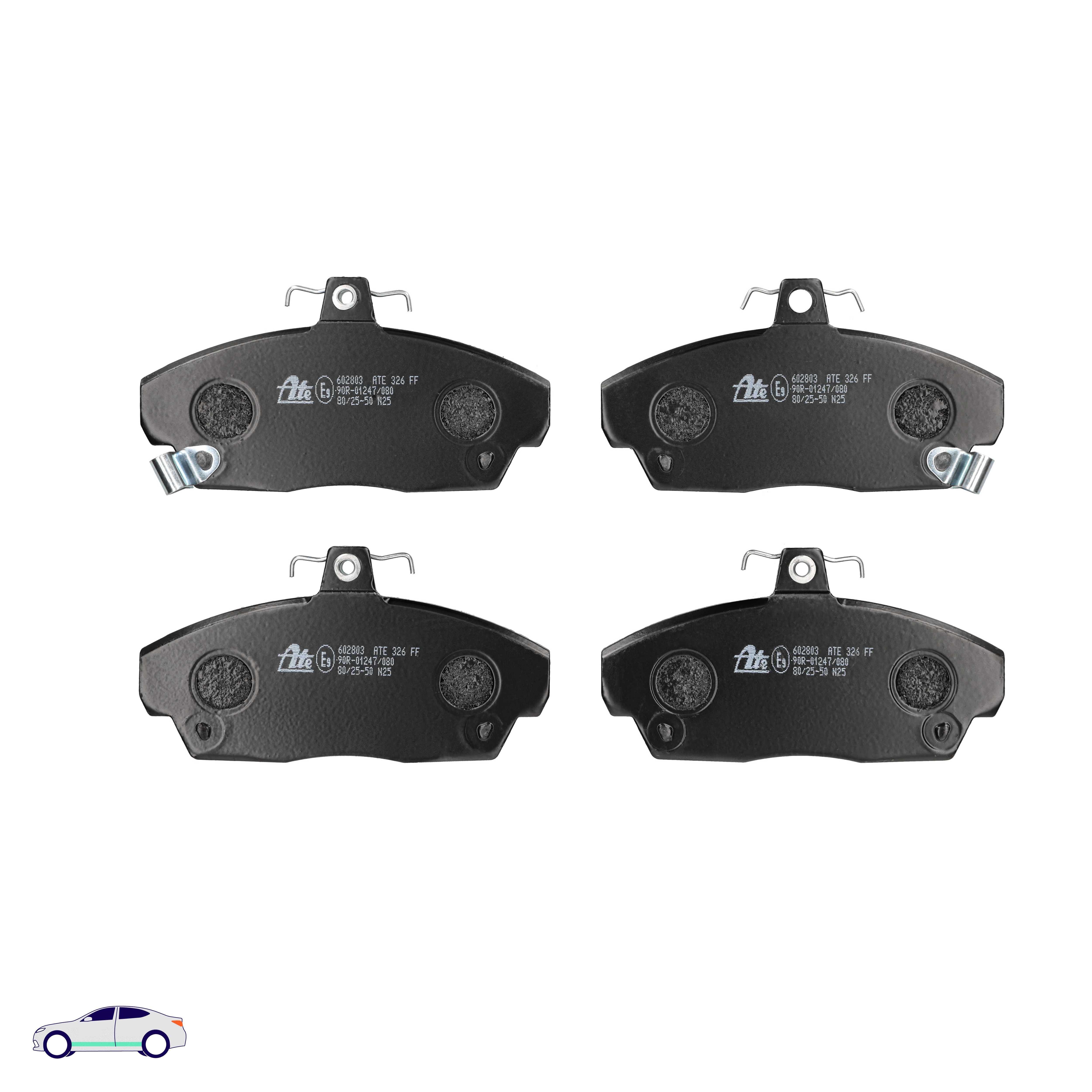 Menge 1 entspricht einem Satz (PKW = 4 Bremsbeläge für eine Achse, Zweirad = 2 Bremsbeläge für eine Achse)