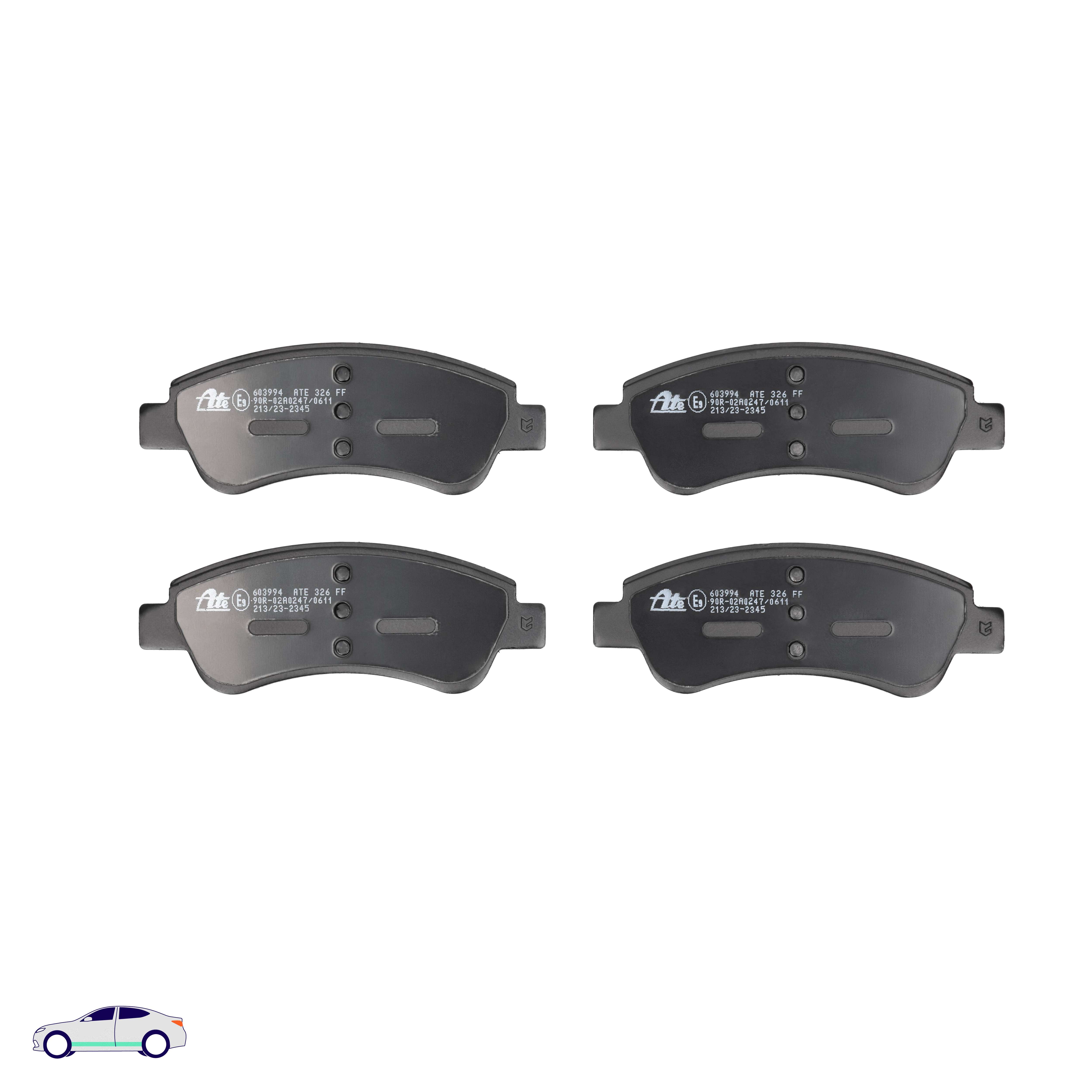 Menge 1 entspricht einem Satz (PKW = 4 Bremsbeläge für eine Achse, Zweirad = 2 Bremsbeläge für eine Achse)