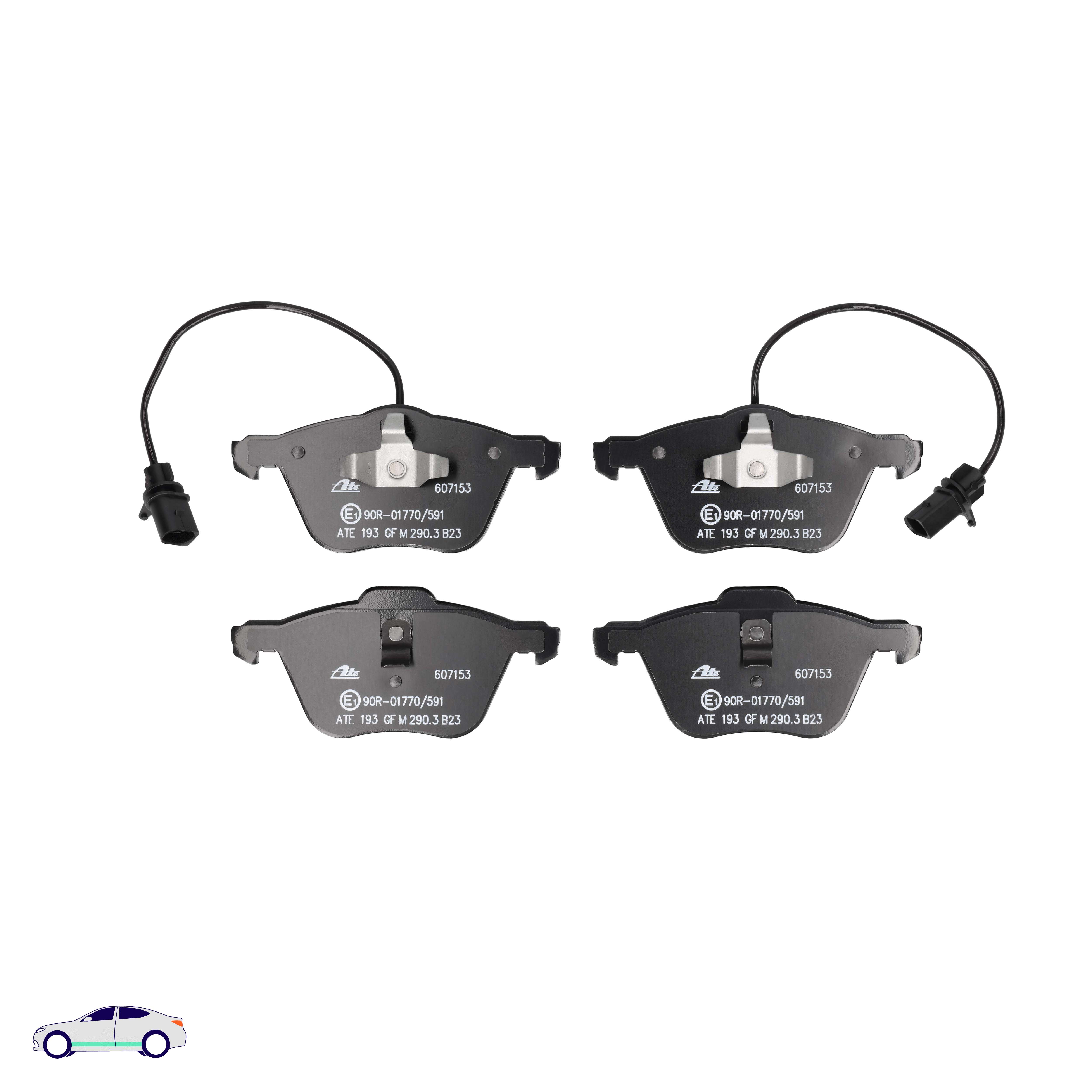 Menge 1 entspricht einem Satz (PKW = 4 Bremsbeläge für eine Achse, Zweirad = 2 Bremsbeläge für eine Achse)