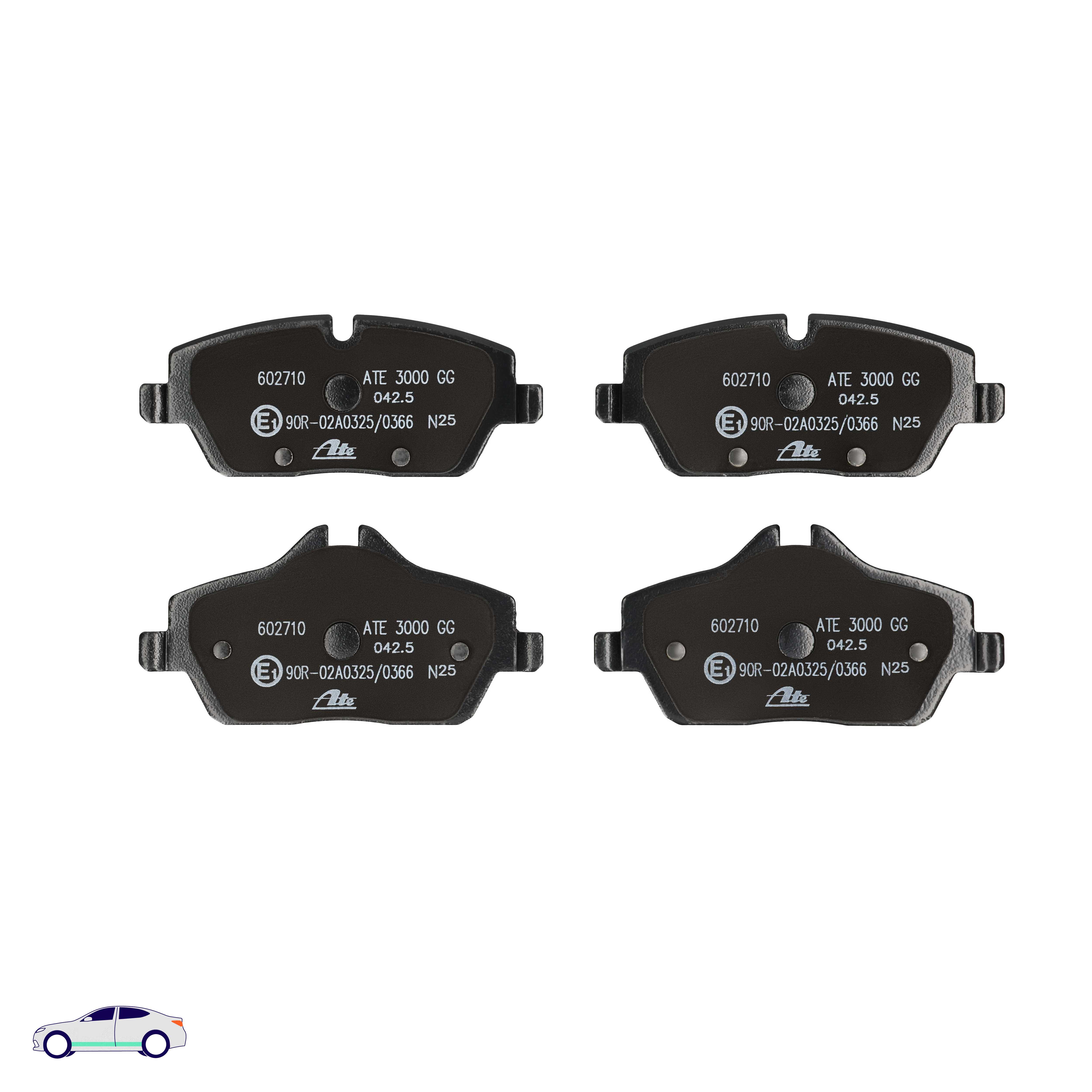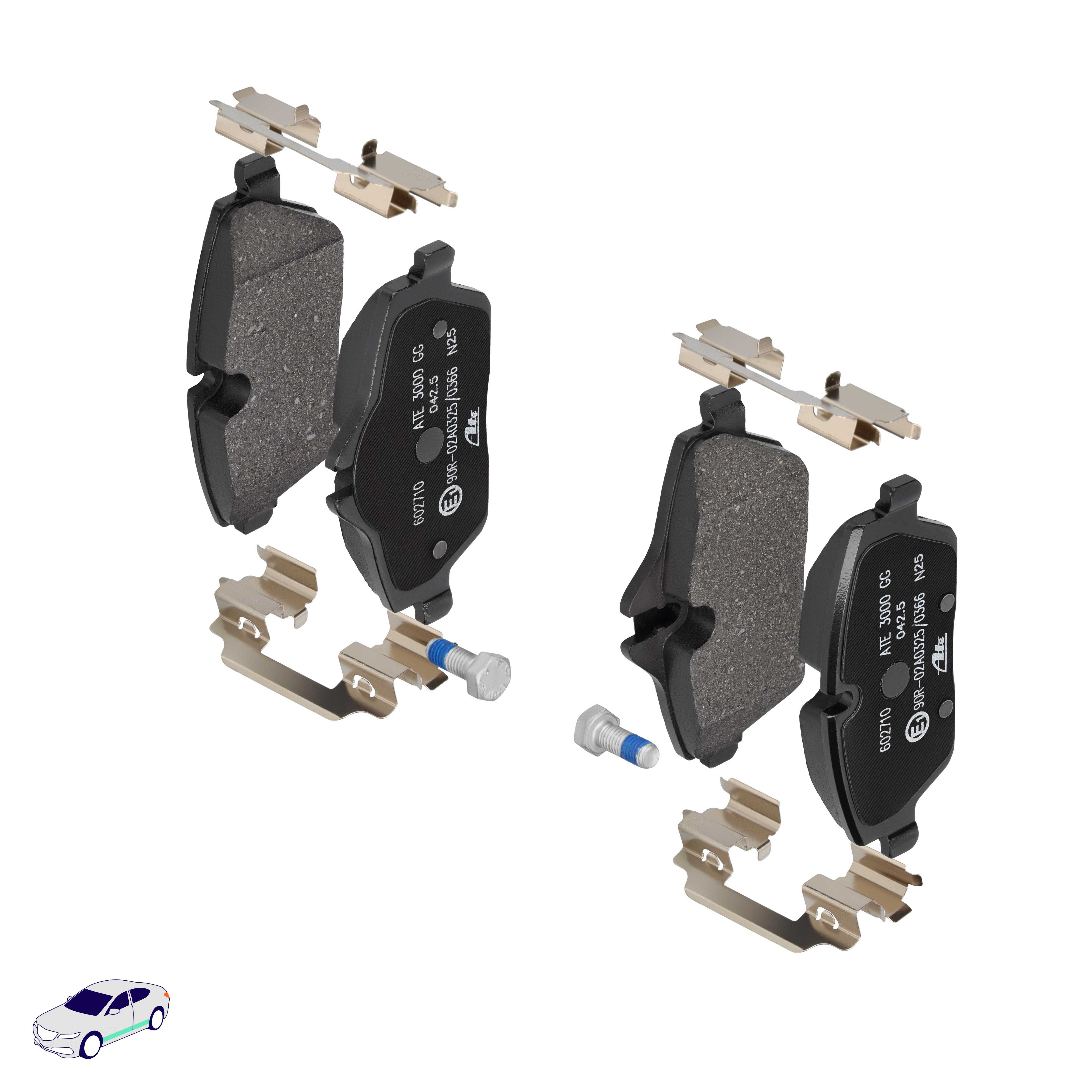Menge 1 entspricht einem Satz (PKW = 4 Bremsbeläge für eine Achse, Zweirad = 2 Bremsbeläge für eine Achse)