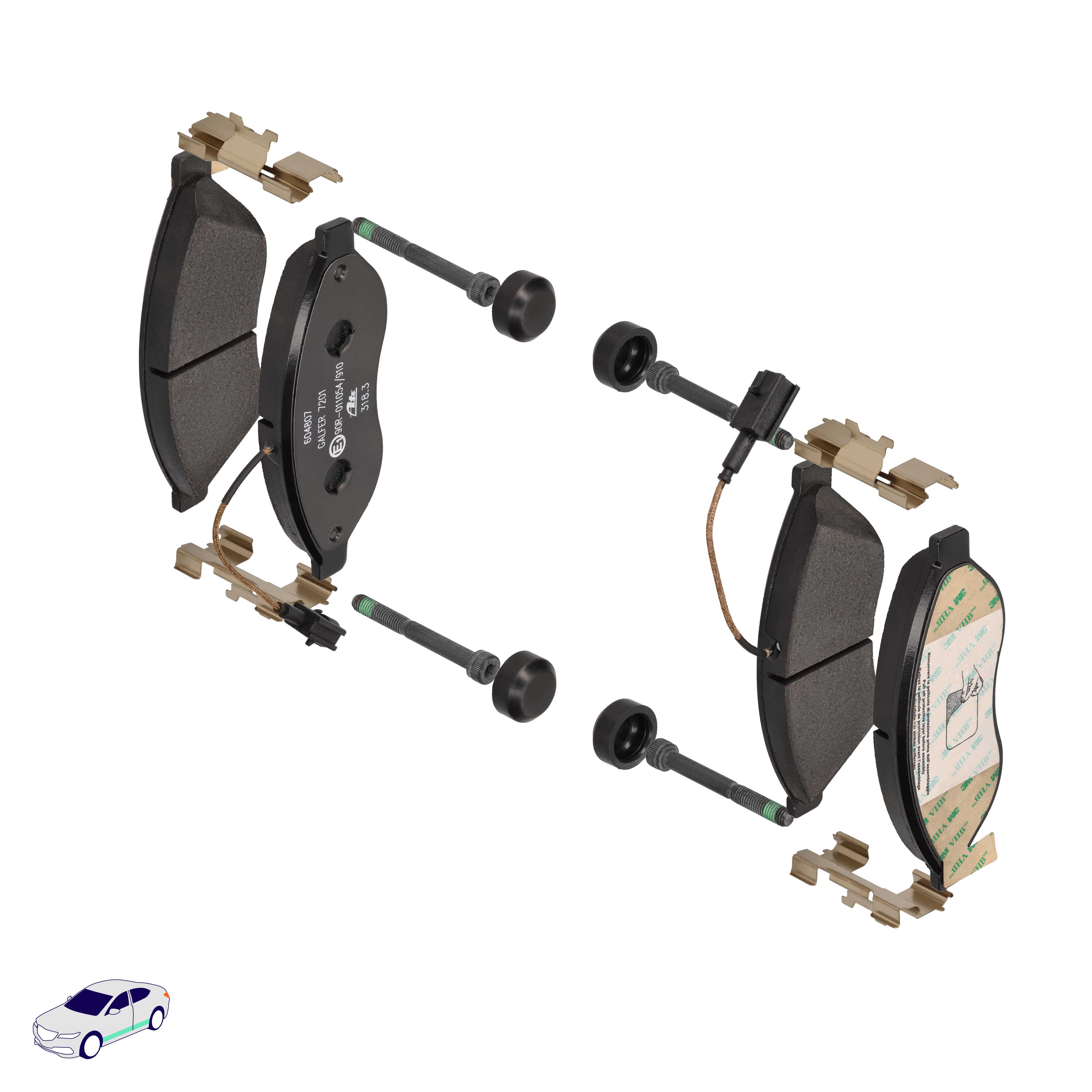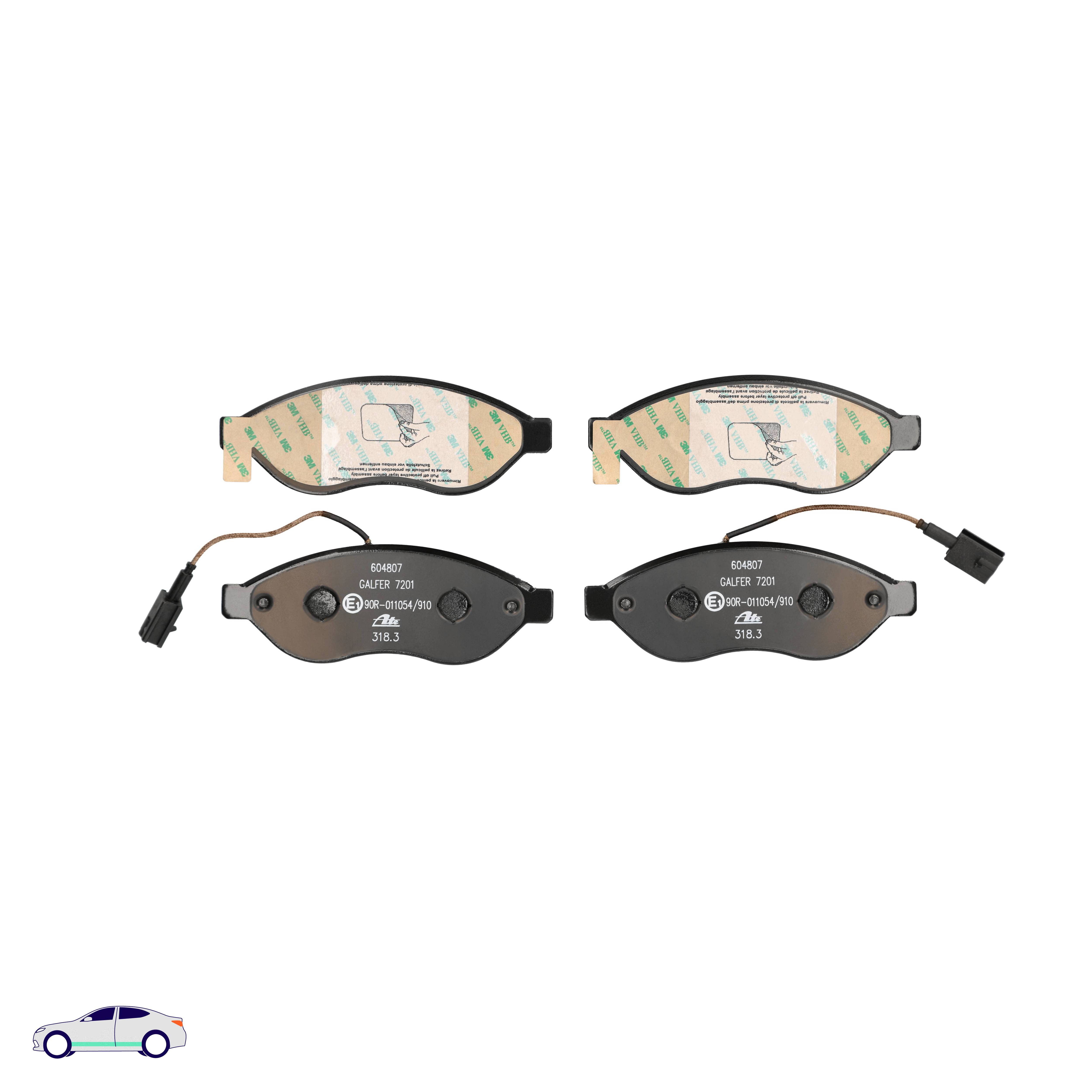 Menge 1 entspricht einem Satz (PKW = 4 Bremsbeläge für eine Achse, Zweirad = 2 Bremsbeläge für eine Achse)
