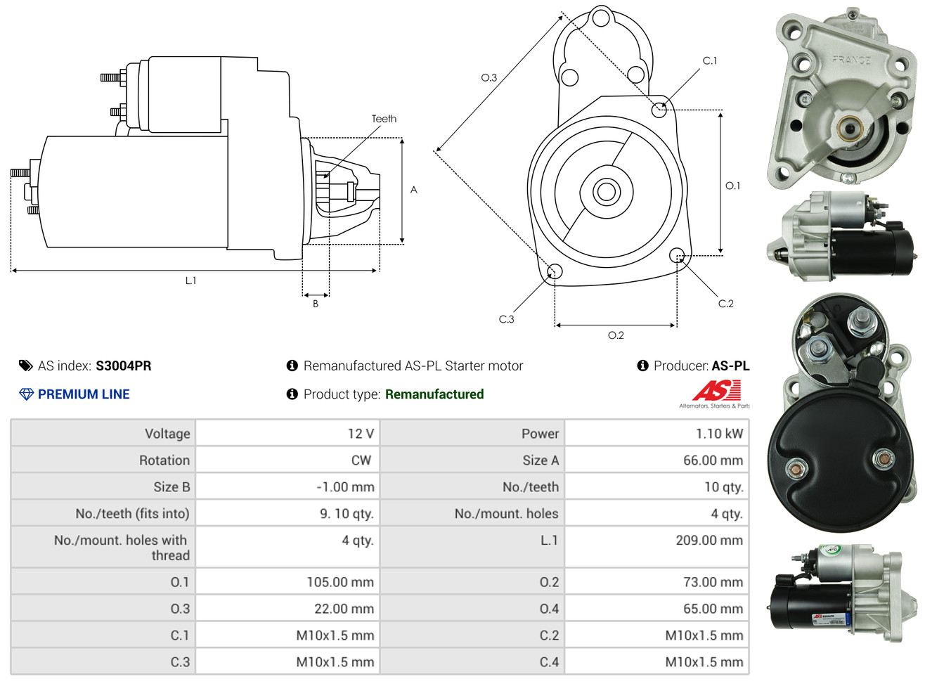 Starter "Wiederaufbereitet | AS-PL | Anlasser" Art.-Nr. S3004PR