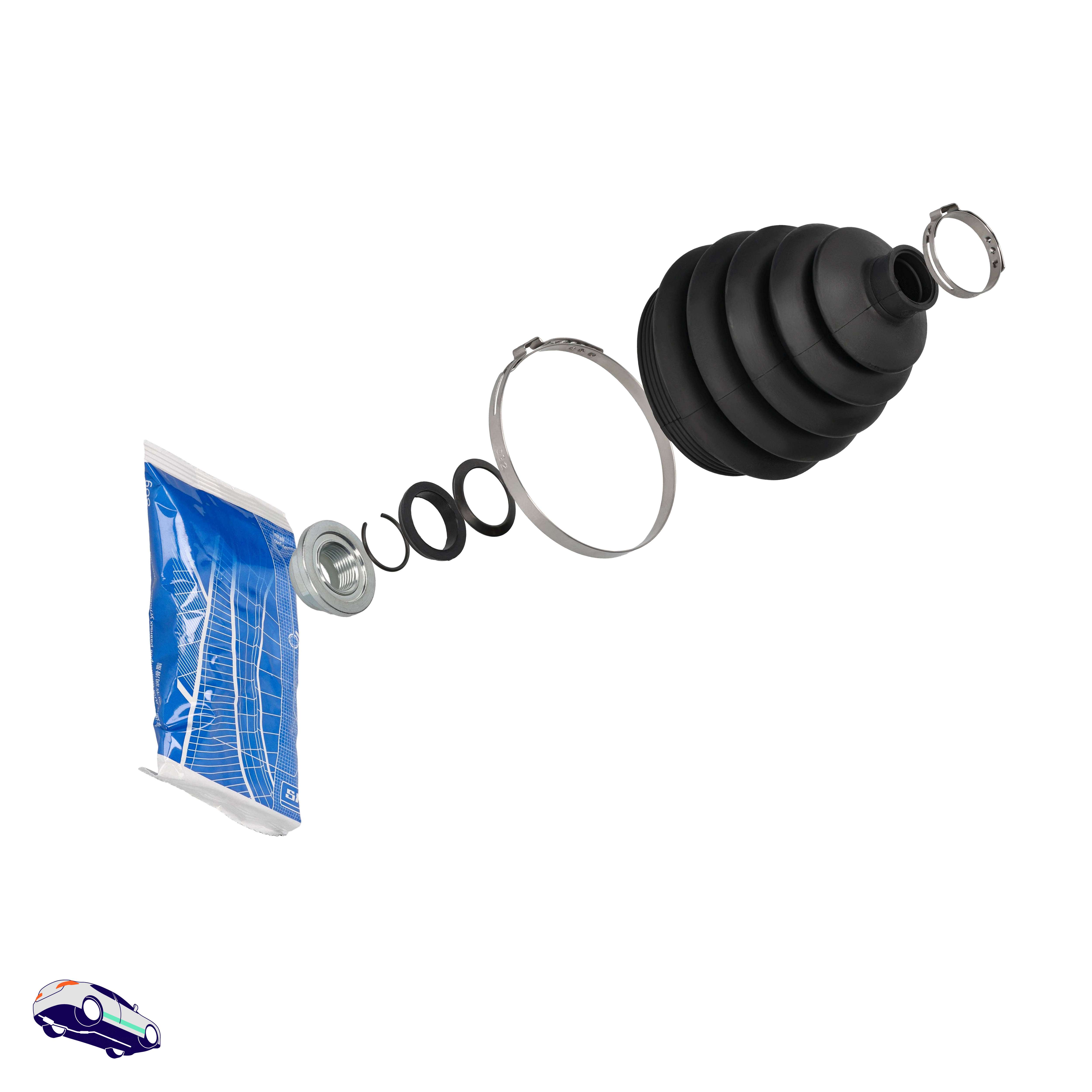 Der Faltenbalg, der auch als Achsmanschette bezeichnet wird, muss vergleichsweise häufig getauscht werden, denn er besteht meist nur aus Kunststoff oder Gummi und neigt mit den Jahren zum Einreißen. Er sollte dann zeitnah gewechselt werden, um eine Beschädigung der Achsgelenke zu vermeiden. Außerdem kann das Schmierfett, dass sich in der Achsmanschette befindet herausgeschleudert werden und im schlimmsten Fall auf der Bremsscheibe landen. Die Bremswirkung wird durch das Fett gemindert und ein präzises Verzögern des Autos ist nicht mehr möglich.