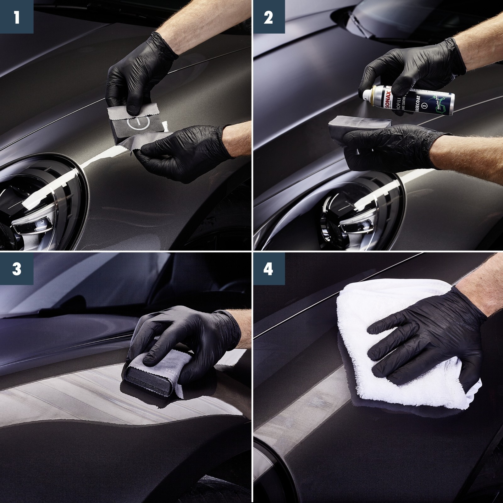 Mit Prepare und einem SONAX Microfasertuch ultrafein sorgfältig die letzten Schmierfilme entfernen.
